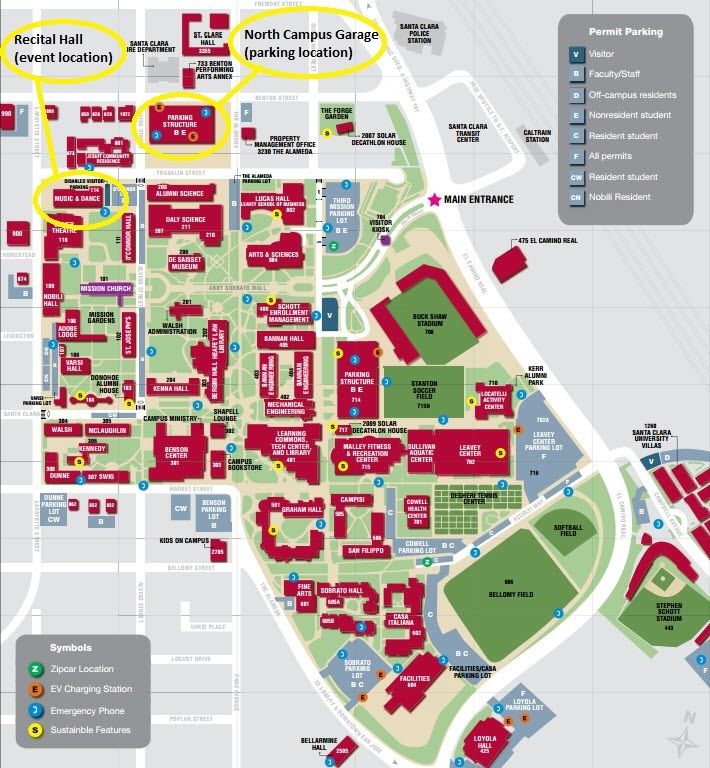 Santa Clara University Map Santa Clara University MapFullsize Santa Clara University Campus MapCampus MapDaly Science Center is circled in blackSanta Clara University Campus Map. Benson Center is marked by orange arrow.Santa Clara University Map