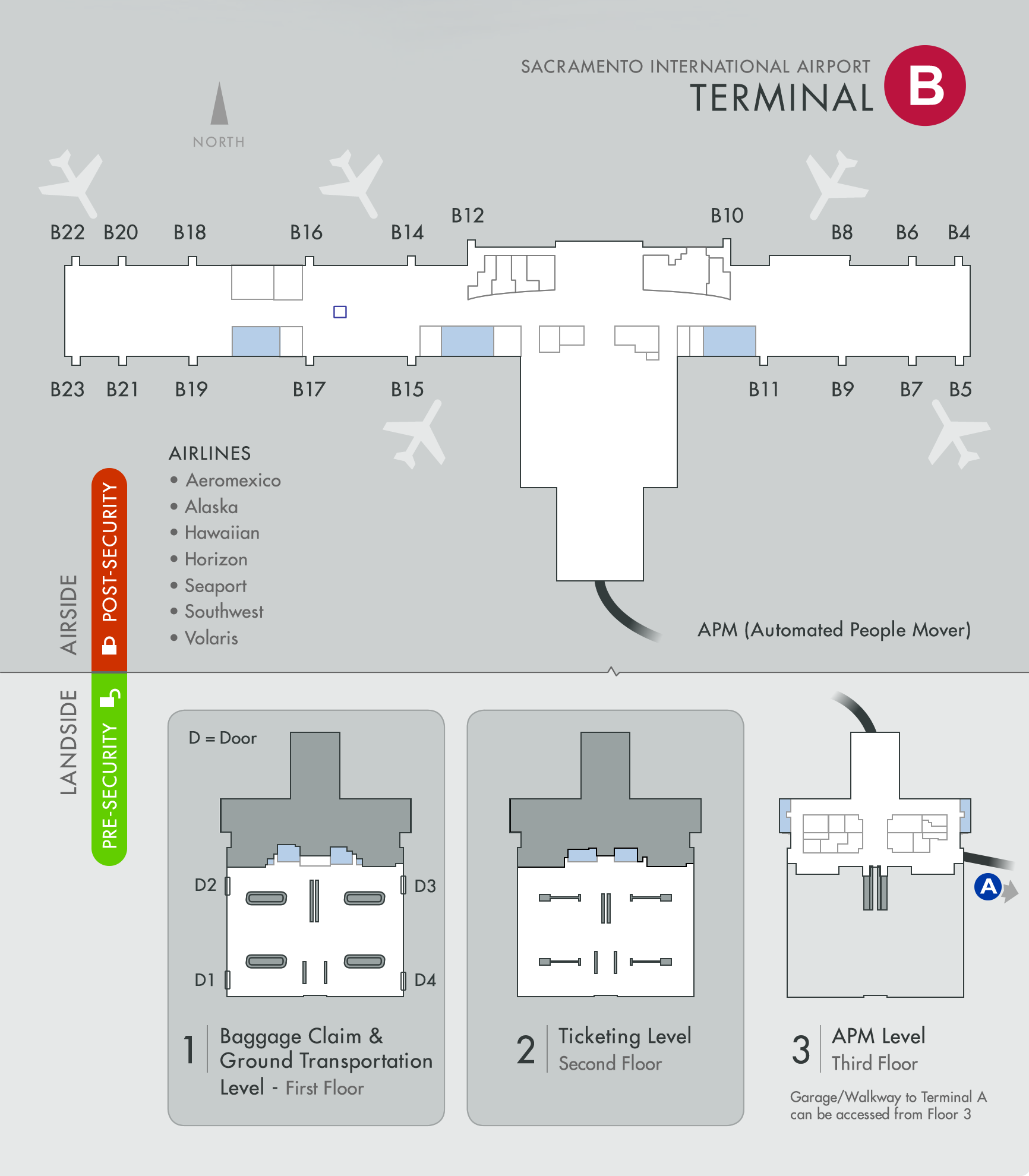 Sacramento Airport Map Sacramento Airport MapParking Garage - A & B11Parking Map for Sacramento International AirportSacramento International Airport Map - Sacramento International Airport Ca mapperyMain Terminal / Concourses at Sacramento SMF AirportSacramento Airport Map